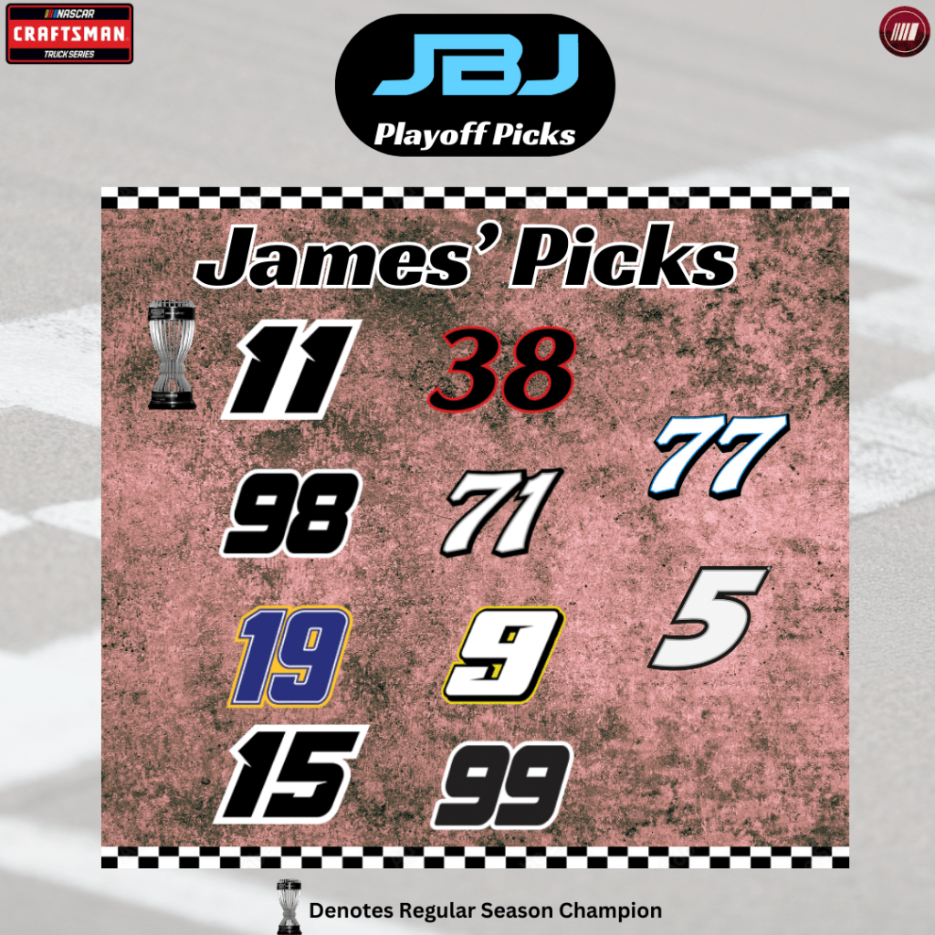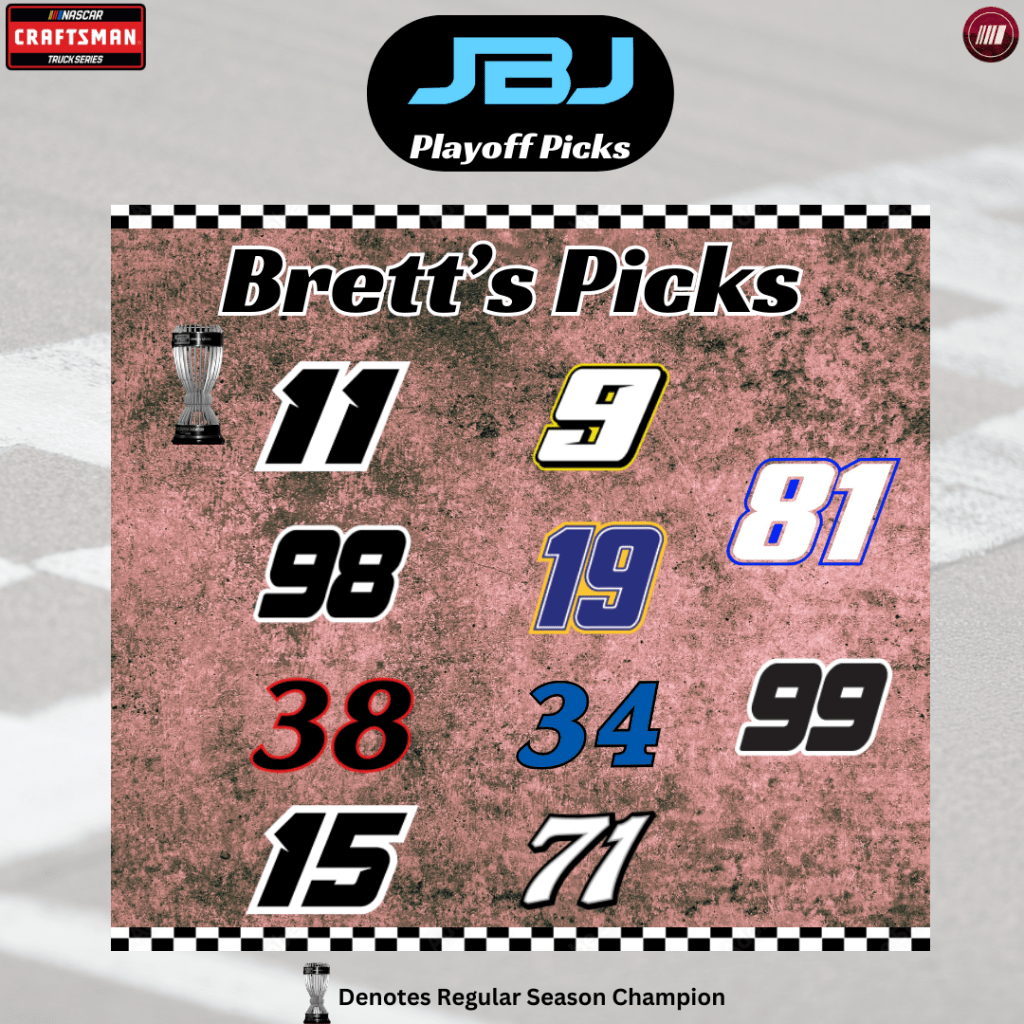 The truck series rarely ever sees surprises because the quantity of talent and top rides is not there and this upcoming season will be no different. Corey Heim, Chandler Smith, Grant Enfinger, and Ty Majeski will win most of this year’s races and the playoff points that come along with it will propel them all the way to championship weekend in Phoenix.